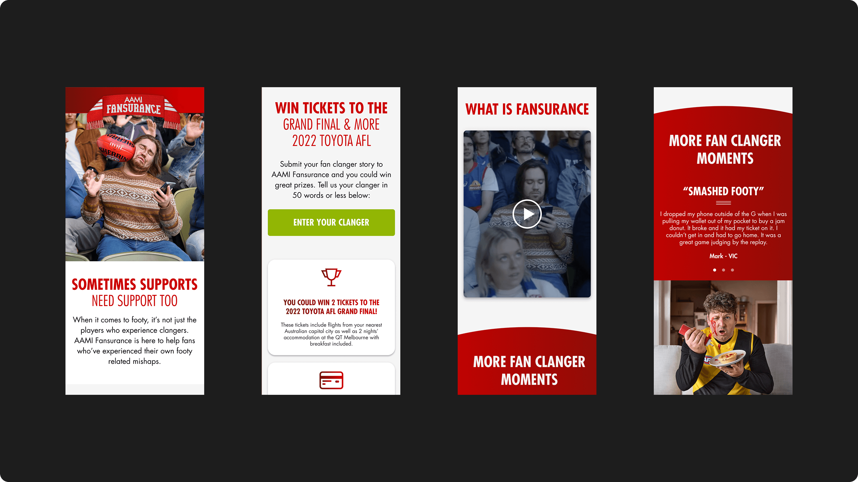To support the launch of AAMI Fansurance, we built a digital experience where fans could enter their ‘clangers’ for a chance to enter the competition. A suite of supporting assets helped carry the campaign across online channels.