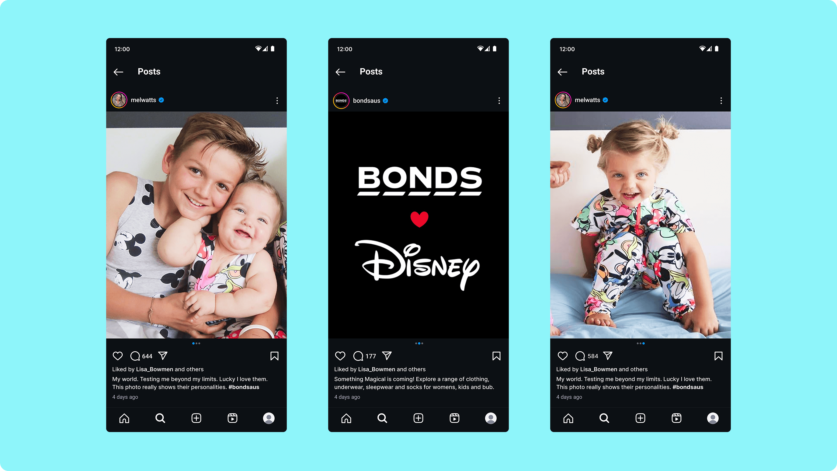 Bonds teamed up with Disney for their first-ever collaboration. A pairing of two iconic brands with huge cross-generational reach. The launch combined film, photography, social content and digital design, including dedicated landing pages that brought the range to life.