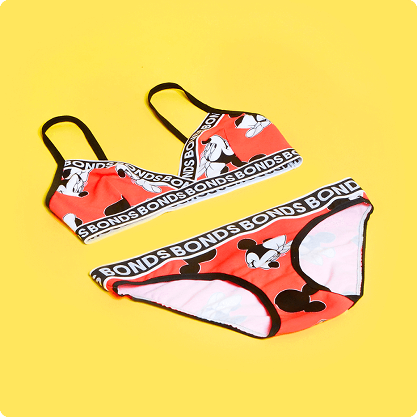 A colourful collab between Bonds and Disney. Bringing classic characters to life with a playful Bonds touch.