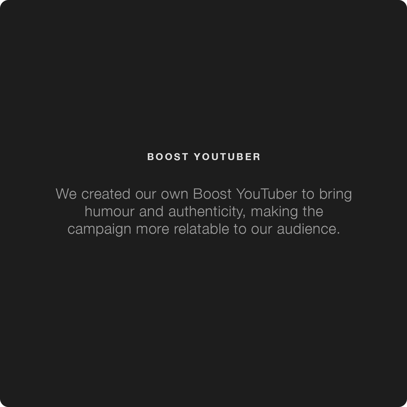 When our research revealed how strongly gamers over-index for Boost, we leaned in hard. We produced a full Production-at-Scale campaign with dozens of YouTube videos, each made to the gaming channels and content they love to watch.