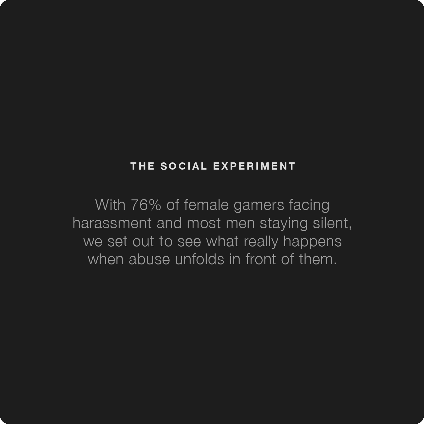 Harassment toward female gamers is rampant online, and evidence makes it clear that more needs to be done to change the game for good. We created a social experiment that acts as a reminder that there is a real person on the other side of the game, and abuse can target a friend, partner, sister or daughter.