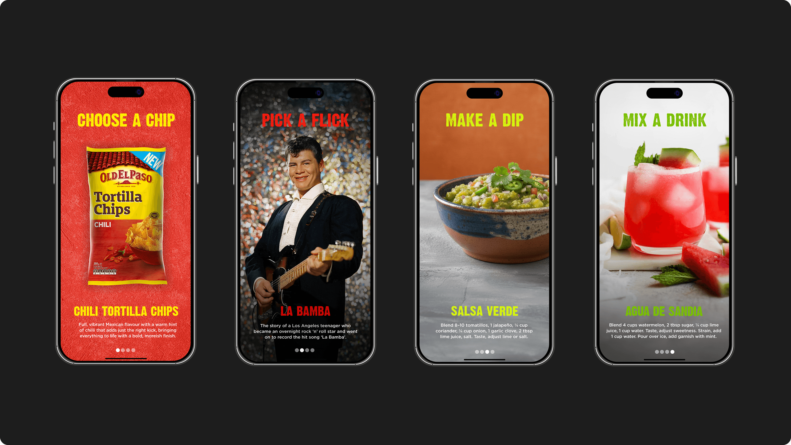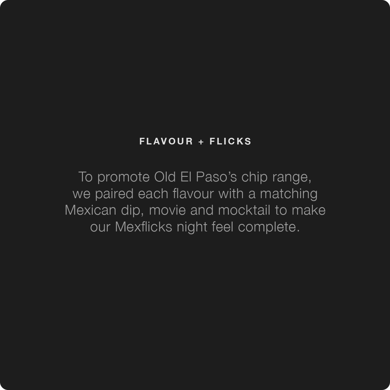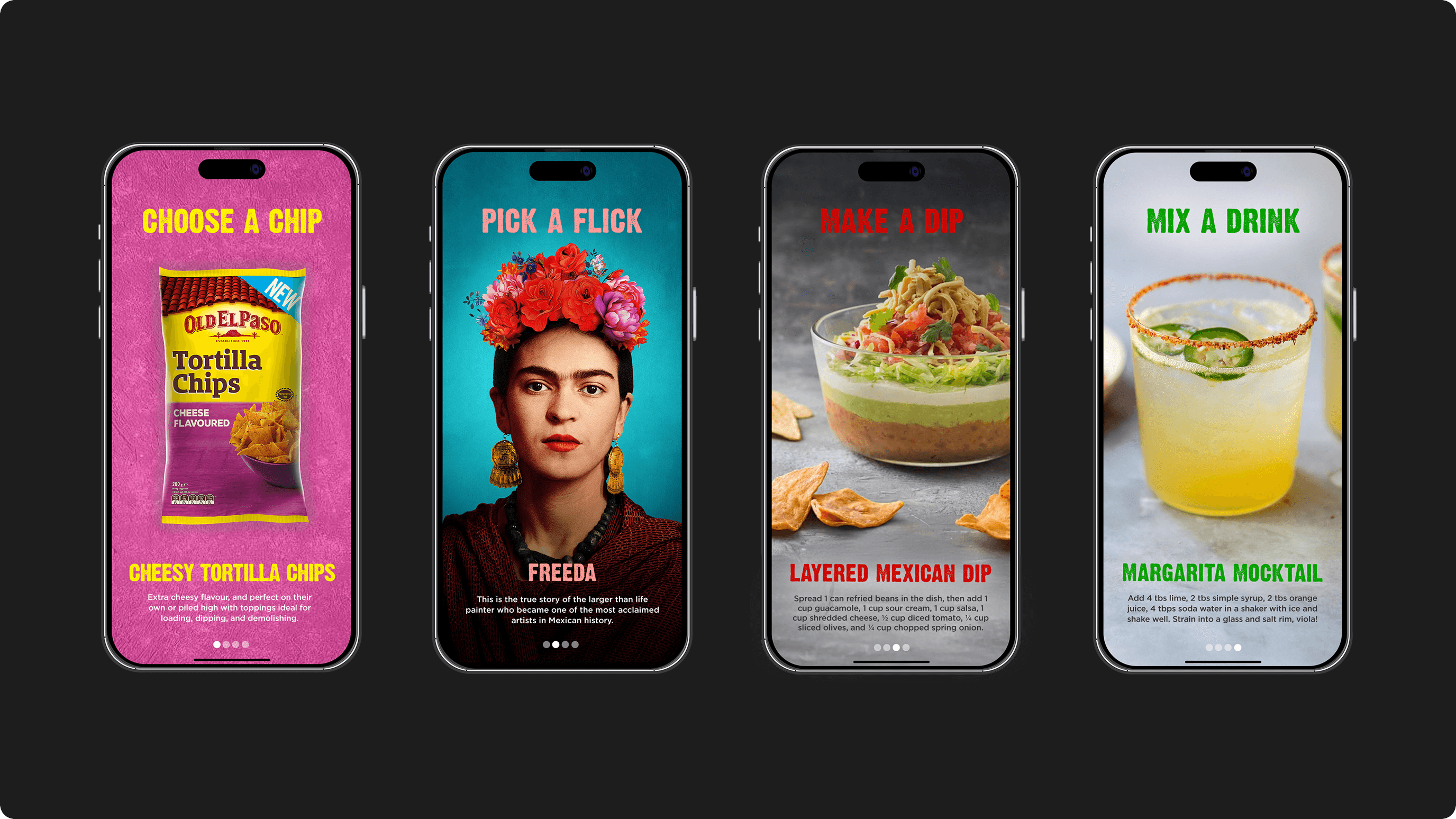 We brought the Mexflicks to life through an interactive Facebook Canvas, giving users everything they needed to plan a Mexican-themed night in. From movie picks, mocktails to chips and dips, it’s the perfect scroll-stopper for snack lovers and streaming addicts alike.
