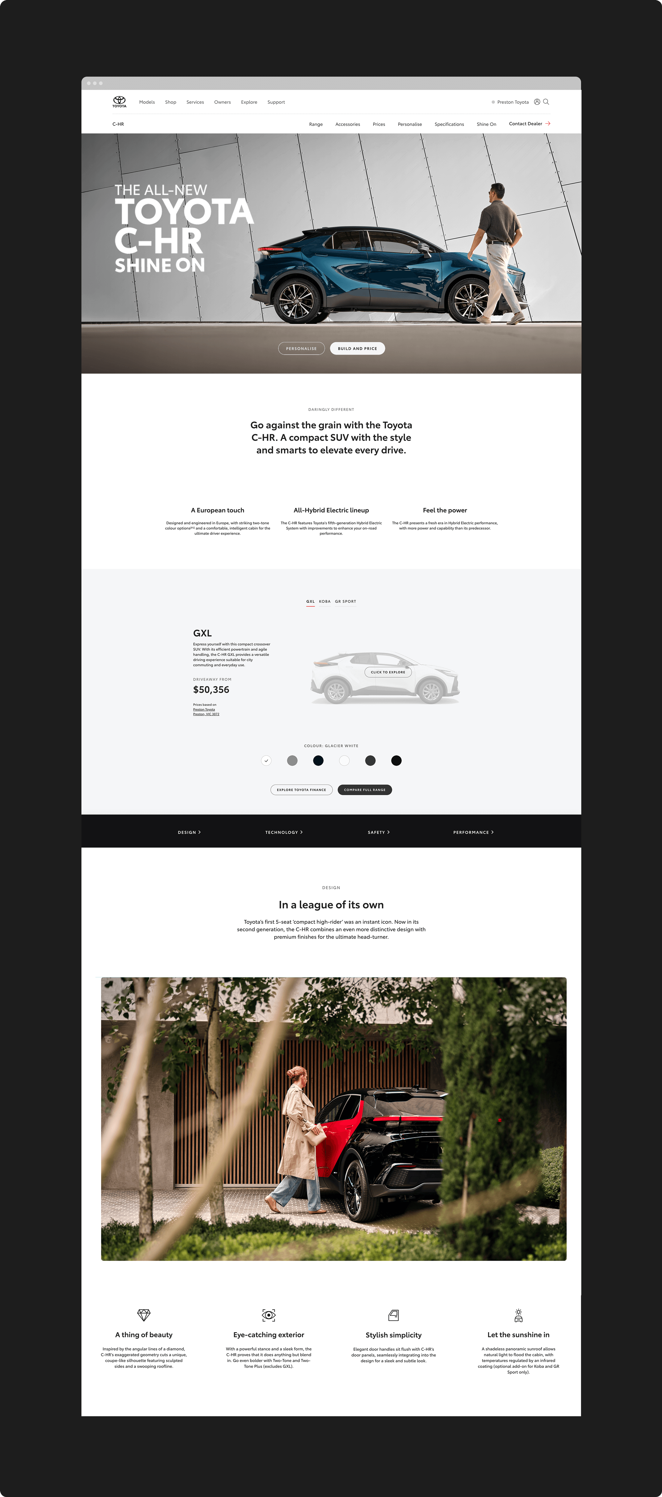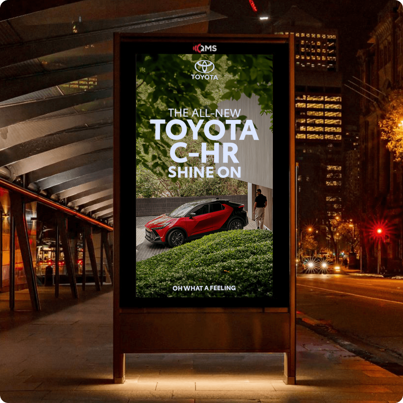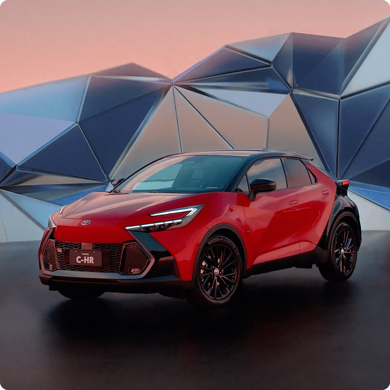 Inspired by the angular lines of a diamond, the Toyota C-HR’s bold geometry creates a distinctive, coupe-like silhouette. To showcase this unique design, we used a volume screen to fully highlight the car's diamond-inspired aesthetics.